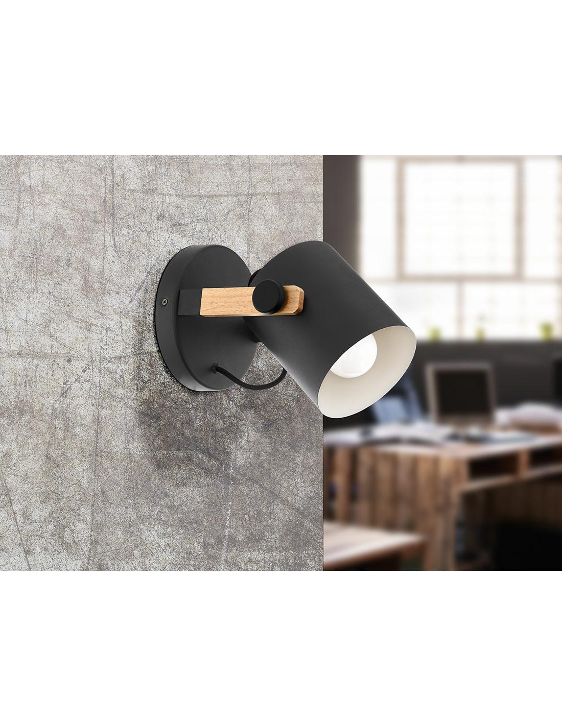 Aplique de pared acero negro con madera - Eglo Hornwood