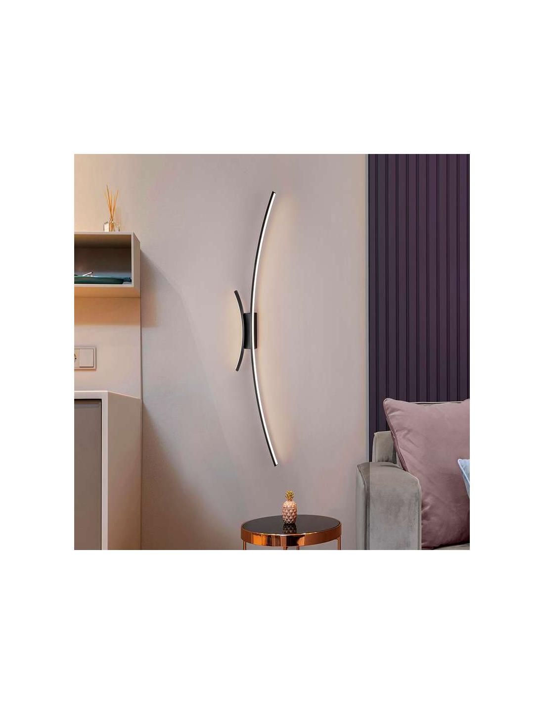 Lámpara de pared , realizada en aluminio y metal, acabado negro mate. Brazos curvados con luz LED y difusor de silicona opal. 21W LED, 1.450 lm, 3.000 K.