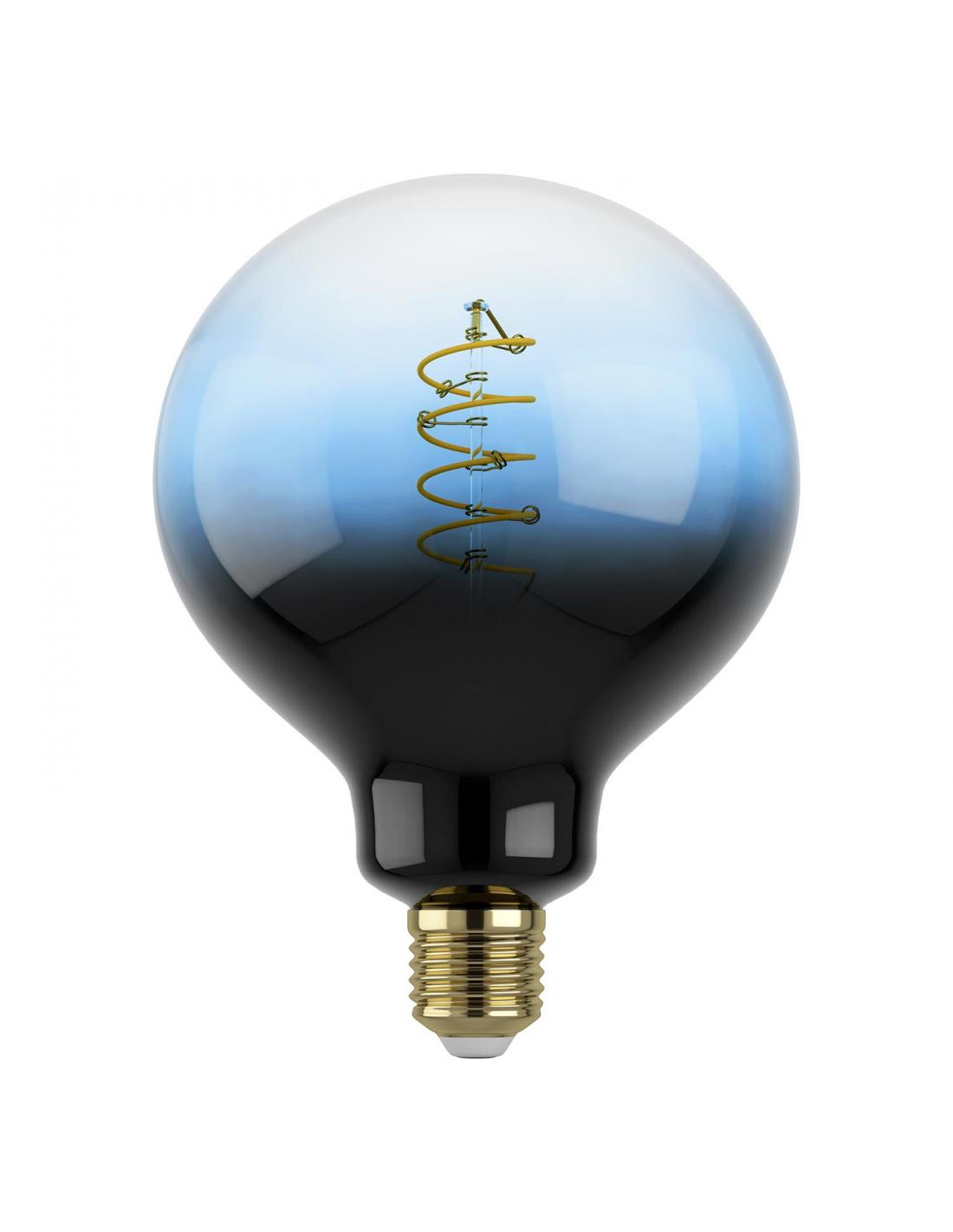 La bombilla decorativa LED E27 de gran tamaño (Big Size) está hecha de vidrio vaporizado con un degradado en petróleo y negro. Los LED en forma de espiral completan a la perfección el expresivo diseño de la lámpara Globe. La bombilla LED (G125) emite una agradable luz blanca cálida y es regulable (según las propiedades de atenuación de su lámpara). Debido a su forma extra grande, es ideal como fuente de luz decorativa independiente y como punto de atracción en cualquier ambiente.