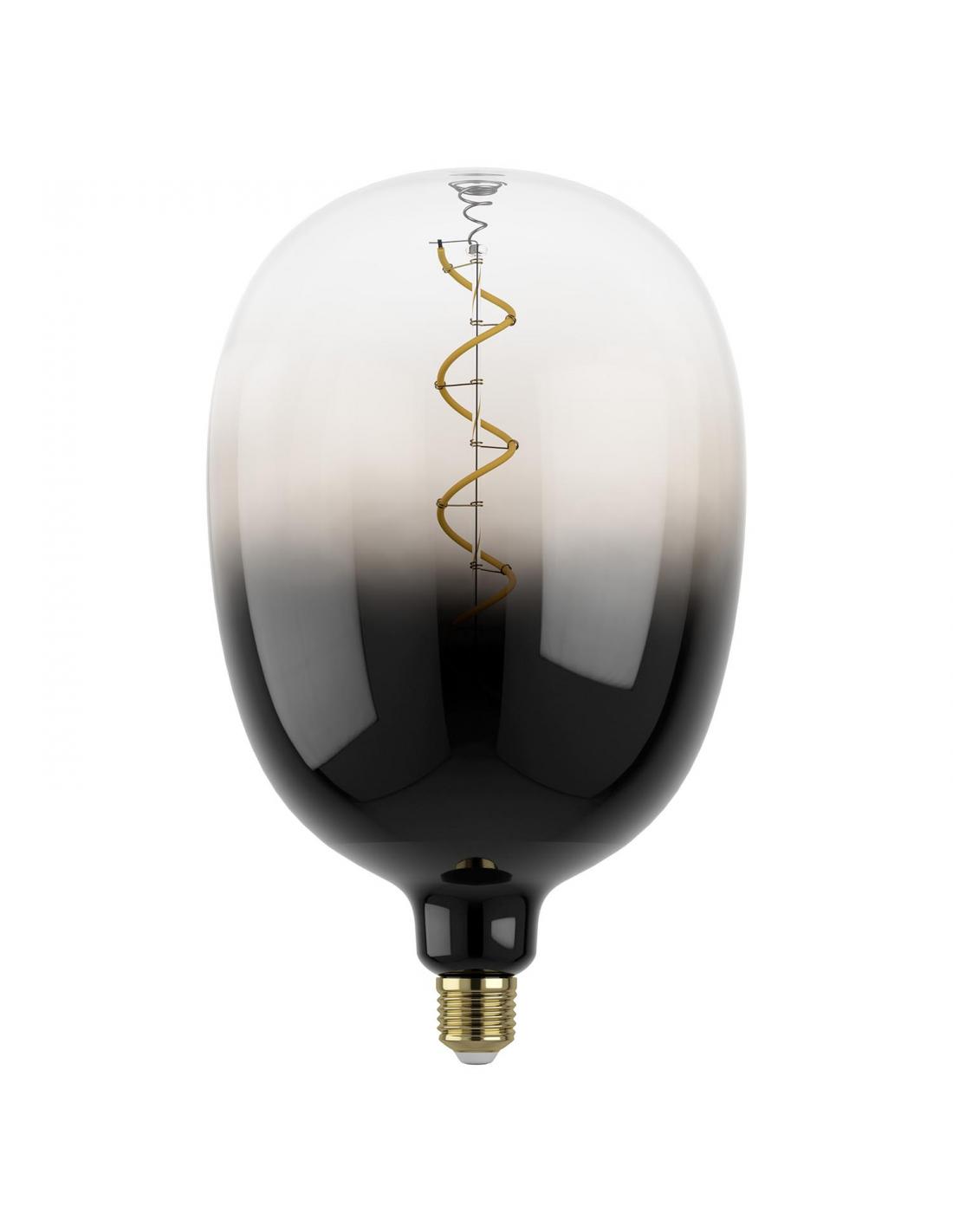 La bombilla decorativa LED E27 de gran tamaño (Big Size) está hecha de vidrio vaporizado con un degradado en gris y negro. Los LED en forma de espiral completan a la perfección el expresivo diseño de la lámpara. La bombilla LED (T180) emite una agradable luz blanca cálida y es regulable (según las propiedades de atenuación de su lámpara). Debido a su forma extra grande, es ideal como fuente de luz decorativa independiente y como punto de atracción en cualquier ambiente.