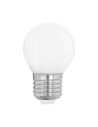 Bombilla de vidrio color opal con casquillo E27 que desprende una luz blanca cálida. Con 75 mm de altura y un diámetro de 45 mm, y una potenica de 4W Y 2700K