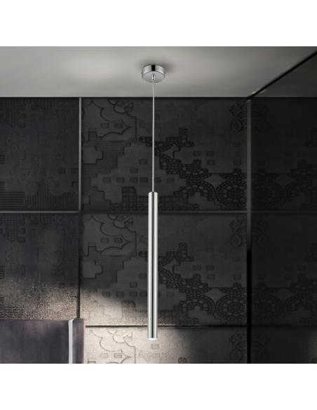 Lámpara de 1 luz LED. Realizada en metal acabado cromo. Difusor acrílico opal. 5W LED, 450 lm, 3.000 K. DIMABLE