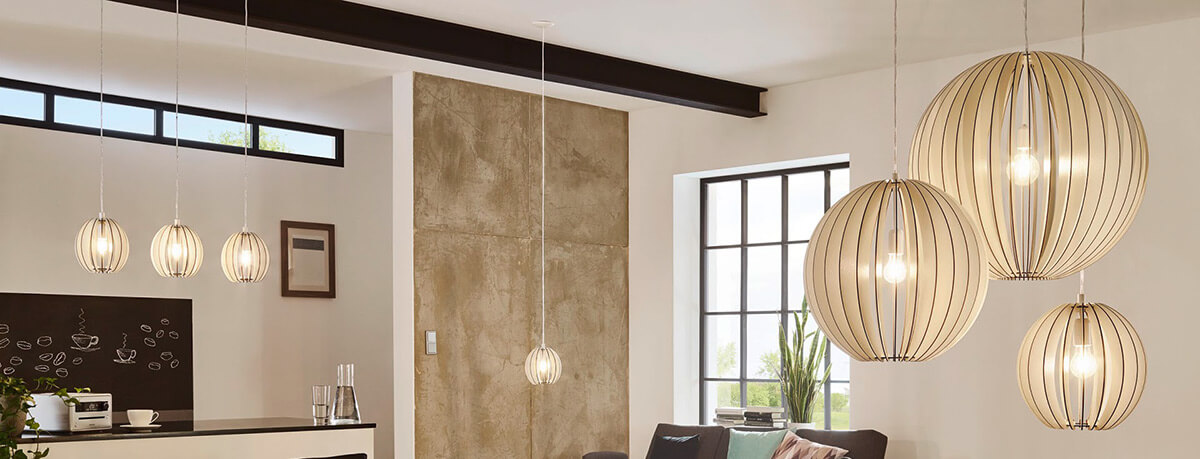 En toda la gama Cossano, las bombillas se dejan ver entre el dibujo de las lamas, por lo que es importante que las elijamos en la forma que mejor se adapte a la lámpara. Nosotros te recomendamos bombillas de filamento.