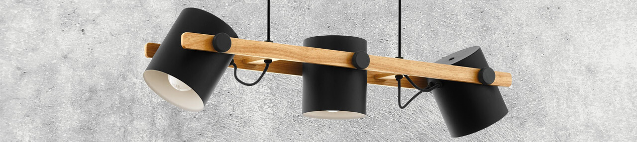 La pieza estrella de esta colección es la lámpara colgante de 3 focos en negro y madera natural. Se ha convertido en un TOP ventas gracias a su versatilidad. Lo mejor de la colección es que dispone del set completo, contando con: colgante, lámpara de mesa, lámpara de pie y apliques de pared.