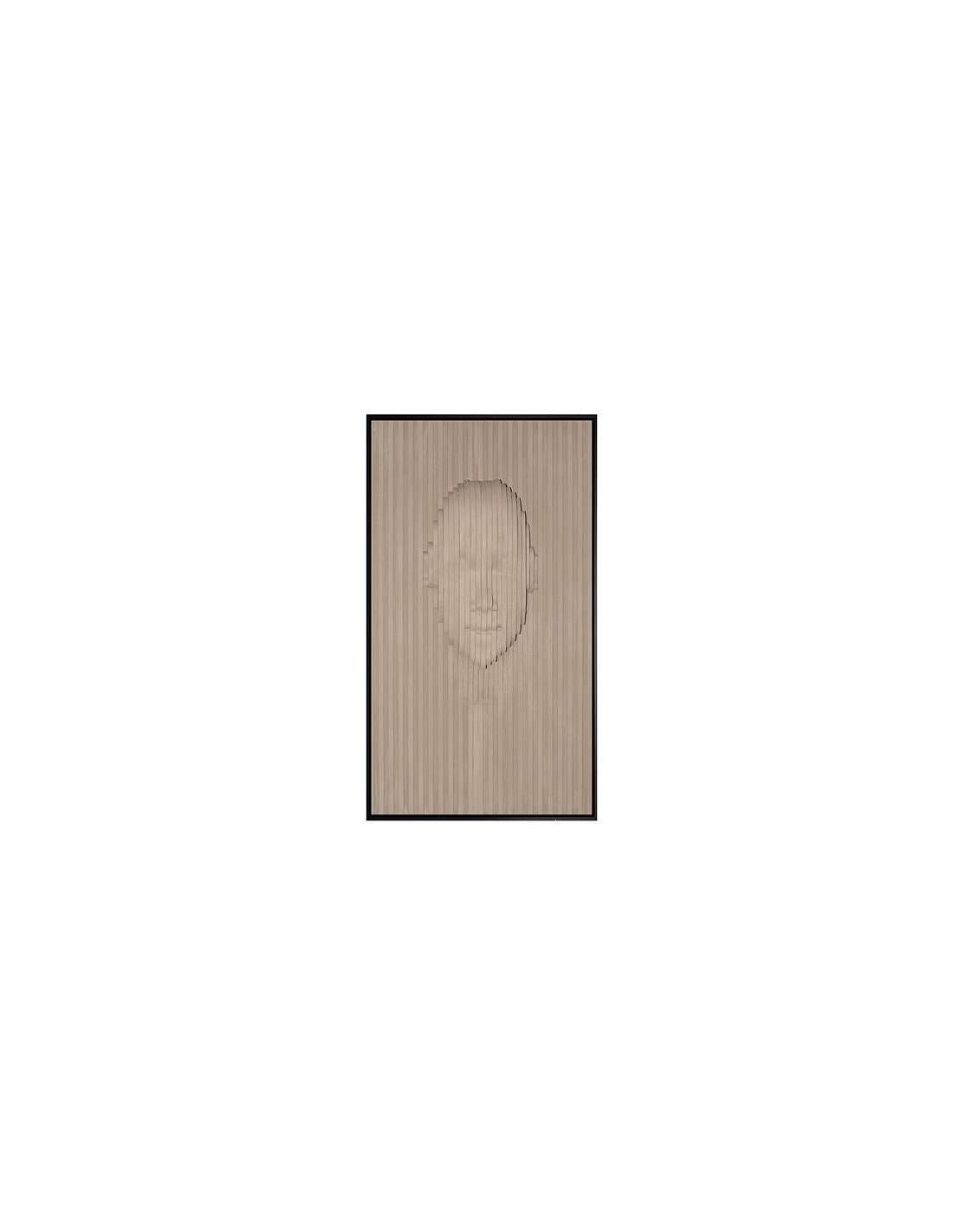 Bajorrelieve realizado en poliestireno y DM, acabado beis. Marco de poliestireno negro.