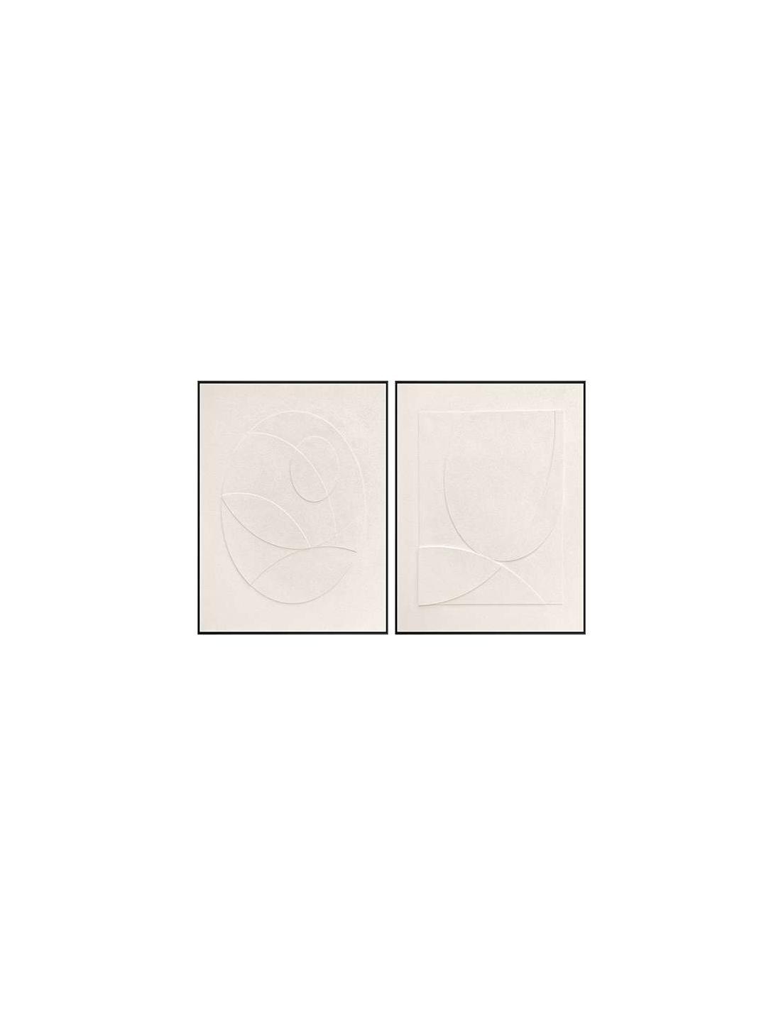 ·ALBOS· set de dos bajorrelieves realizados con láminas de EVA decoradas y montadas sobre bastidor. Marco de poliestireno negro. Preparado para colgar en posición vertical y horizontal.