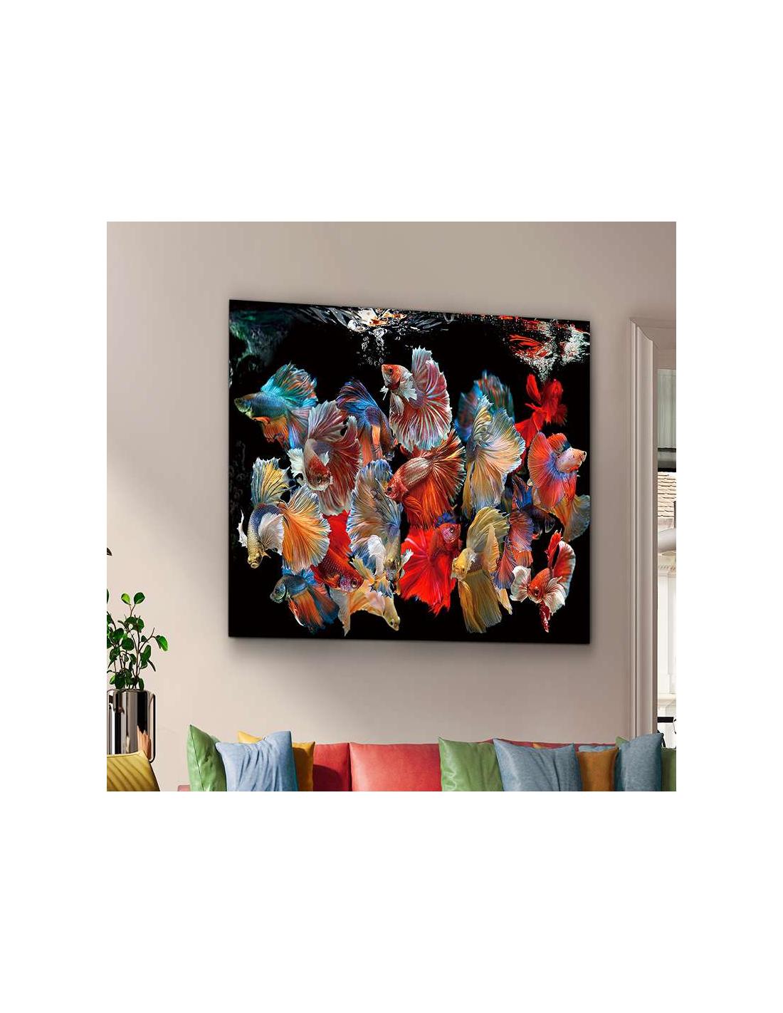 Fotografía impresa, montada en cristal templado. Incluye herraje para sujección a pared.