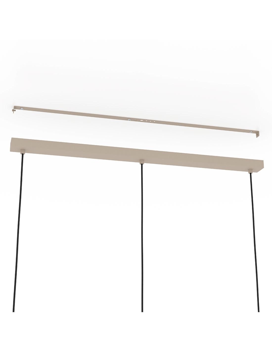 Lámpara colgante de 3 luces fabricada en acero tanto su base como sus tulipas en forma de jaula, ambos en color beige, con cableado regulable en color negro. Perfecta para instalar sobre mesas de comedor alargadas, mesas de trabajo grandes y para ambientes modernos, románticos... E incluso nórdicos. Utiliza 3 bombillas de casquillo E27, no incluidas.