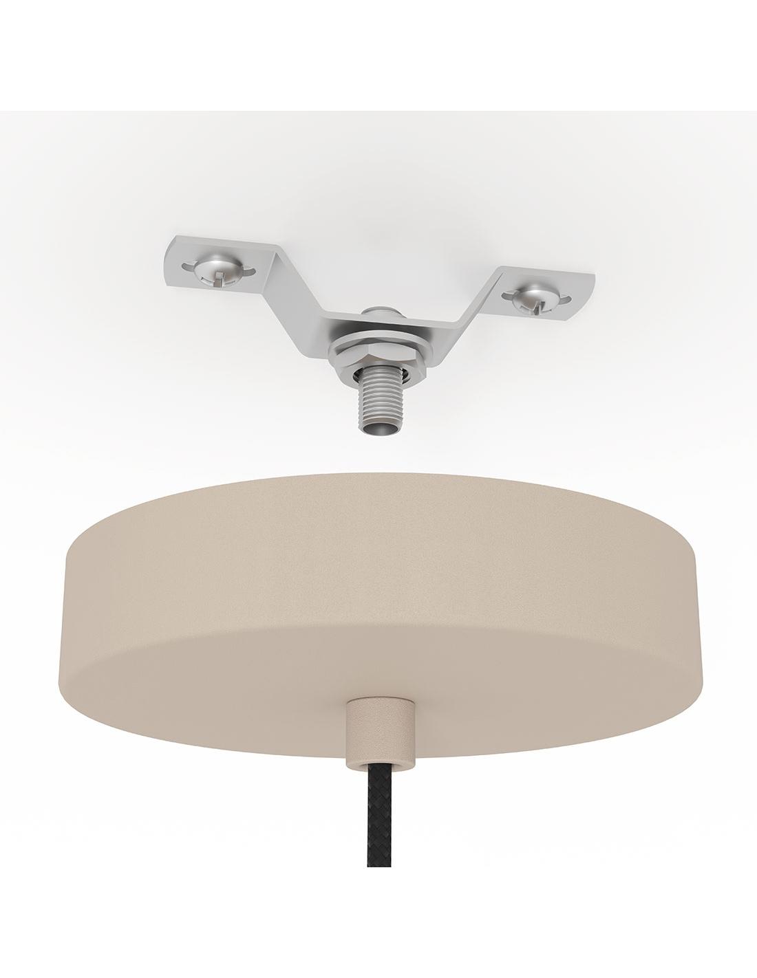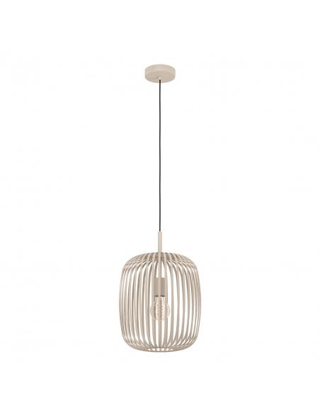 Preciosa lámpara colgante fabricada en acero color beige tanto su tulipa en forma de jaula como su base. Gracias a este acabado, Romazzina emitirá un bonito efecto de luz sobre tu estancia, ya sea de estilo nórdico, moderno o romántico, y su cable regulable en altura de color negro te permitirá ubicarla a tu gusto. El portalámparas visible visualmente hace que recomendemos elegir una bombilla vintage o blanca para hacerla funcionar (bombilla de casquillo E27, no incluida).