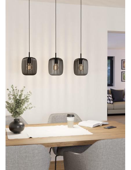 Lámpara colgante 3 luces acero negro - Eglo Romazzina