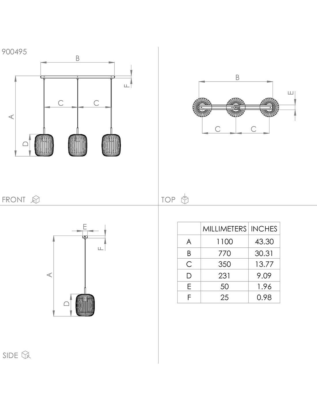 Lámpara colgante de 3 luces fabricada en acero de color negro con tulipas acabadas en forma de jaula abombada, que harán un efecto sobre la difusión de su luz muy bonito y elegante. Esta lámpara es perfecta para instalar sobre una mesa de comedor alargada, y su cable regulable en altura te hará su instalación mucho más sencilla, con una altura total de 110 cm. Utiliza tres bombillas de casquillo E27, no incluidas.