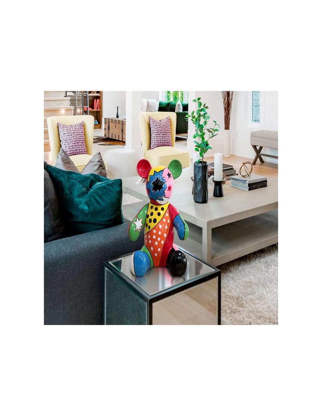 Figura de oso de peluche, realizada en poliresina. Decoración: Pop multicolor, Pintado a mano.