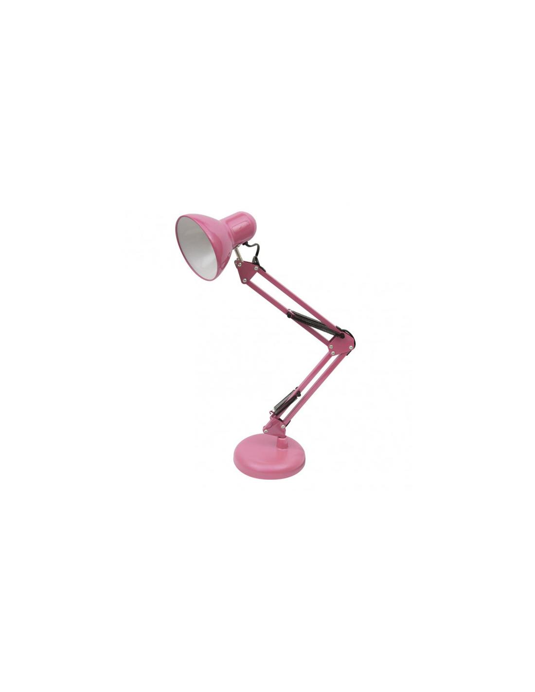 Flexo de la serie RUTILO de color ROSA. De diseño elegante y sencillo realizado en metal, lo que lo hace fuerte y resistente. Con brazo articulado y cabeza abatible lo que hace posible orientarlo hacia el punto donde se necesita la luz directa. Posee un p