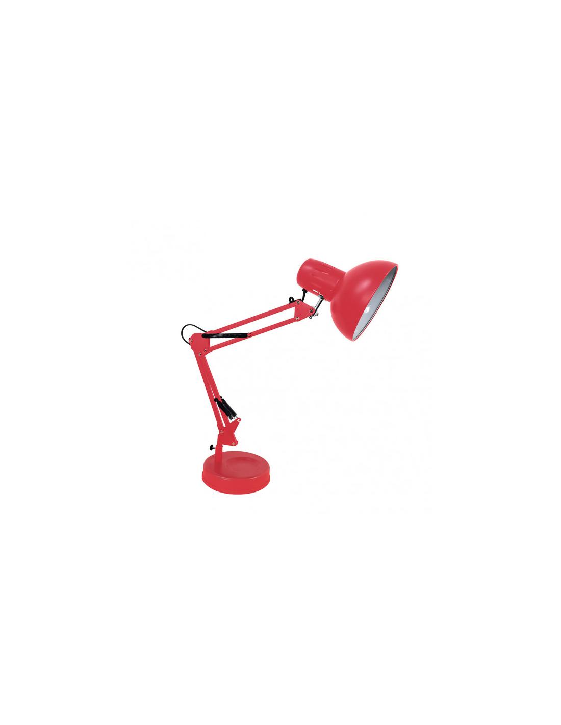 Flexo de la serie RUTILO de color ROJO. De diseño elegante y sencillo realizado en metal, lo que lo hace fuerte y resistente. Con brazo articulado y cabeza abatible lo que hace posible orientarlo hacia el punto donde se necesita la luz directa. Posee un p