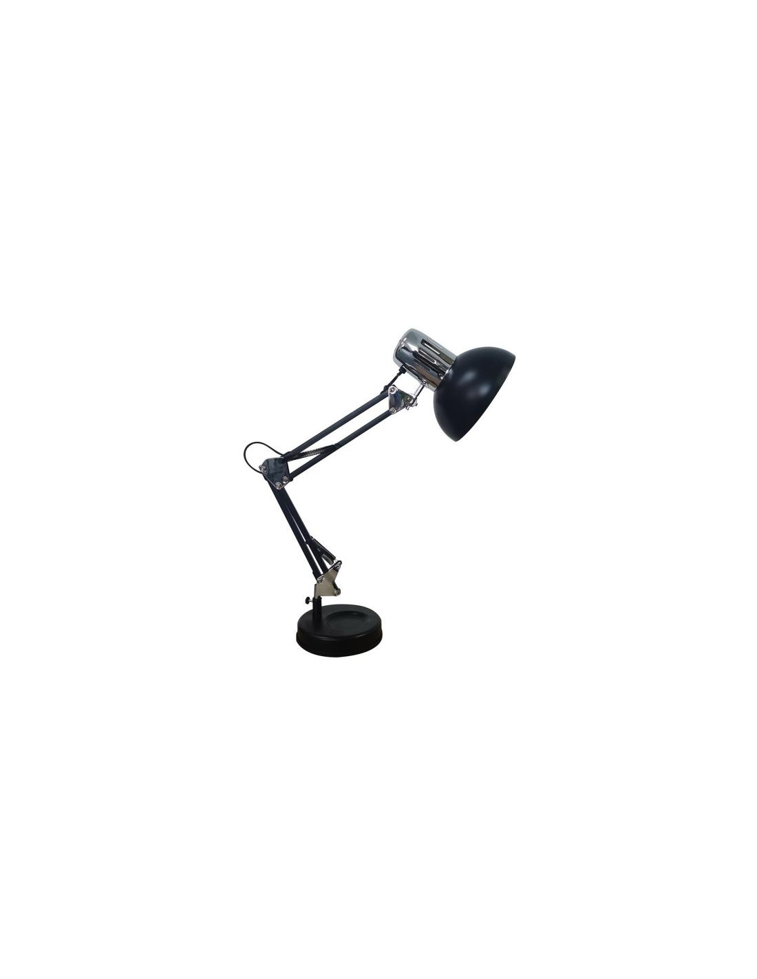 Flexo de la serie RUTILO de color NEGRO/CROMO. De diseño elegante y sencillo realizado en metal, lo que lo hace fuerte y resistente. Con brazo articulado y cabeza abatible lo que hace posible orientarlo hacia el punto donde se necesita la luz directa. Pos