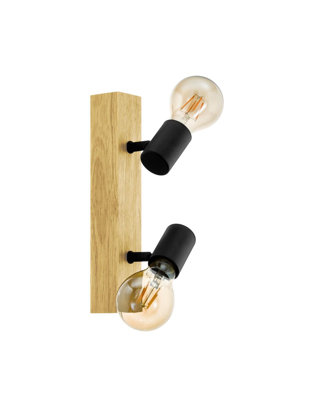 Foco 2 luces madera y acero negro- Eglo Townshend3