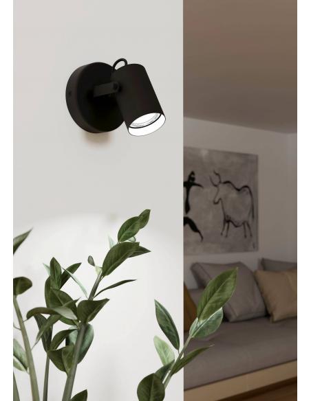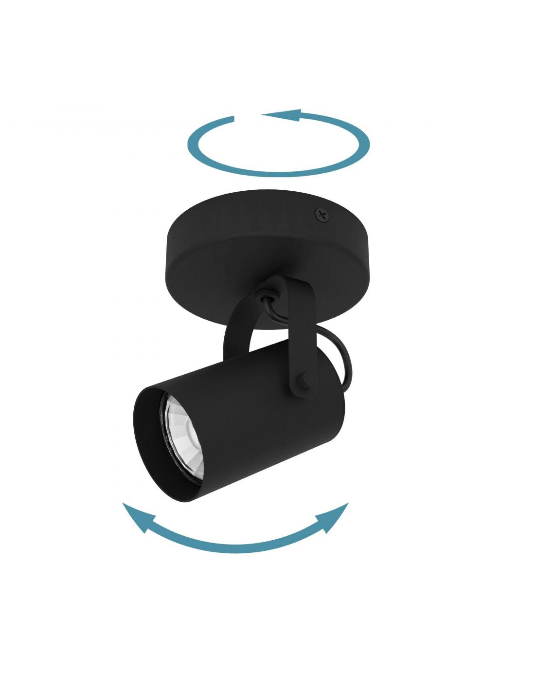 El básico de los focos negros dirigibles u orientables que siempre te salva de cualquier apuro. Instalable en techo o pared, versátil y combinable con cualquier decoración, válido también para negocios. Utiliza bombilla GU10, INCLUIDA.