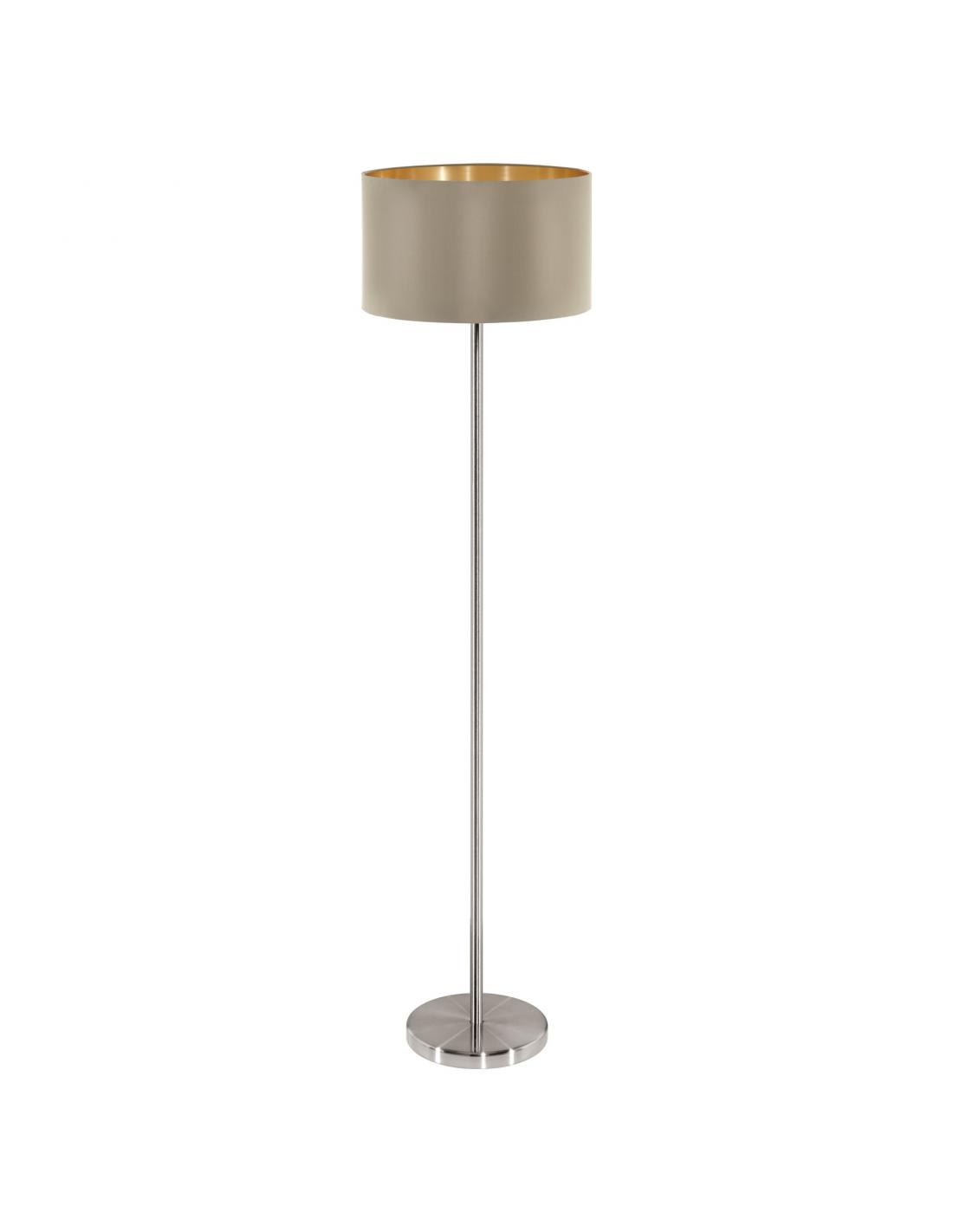 Lámpara de pie de tela MASERLO. Fabulosa para Lámpara de salón, fabricada por EGLO, en Acero color Gris y Textil color champán y oro en su interior. Necesita bombillas E27, NO INCLUIDA.