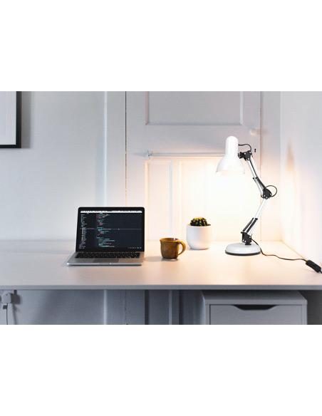 COLINEZZA es un sencillo pero bonito Flexo de escritorio, fabricado por EGLO, en Acero color blanco con detalles en color negro en la base antideslizante y sus 3 articulaciones. Funciona con bombilla E14, NO INCLUIDA.