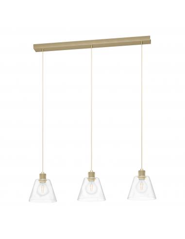 La Lámpara COPLEY es una ideal Lámpara colgante de Cristal, fabricada por EGLO, en Acero, aluminio color dorados y Vidrio color claro. Necesita bombillas E27, NO INCLUIDA.