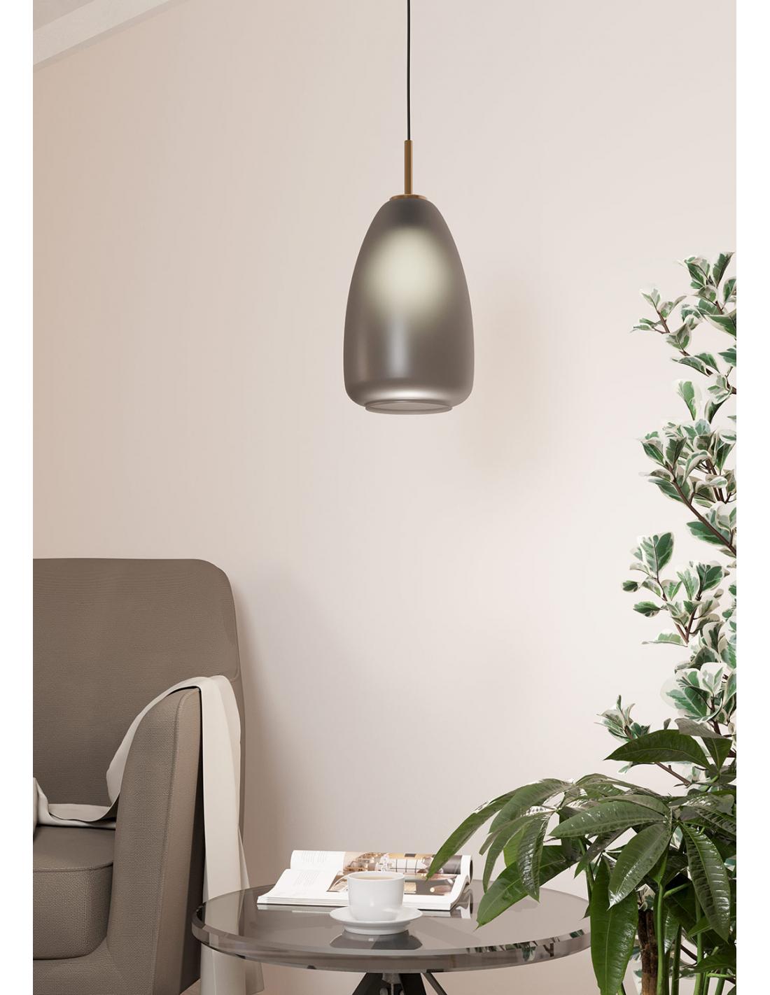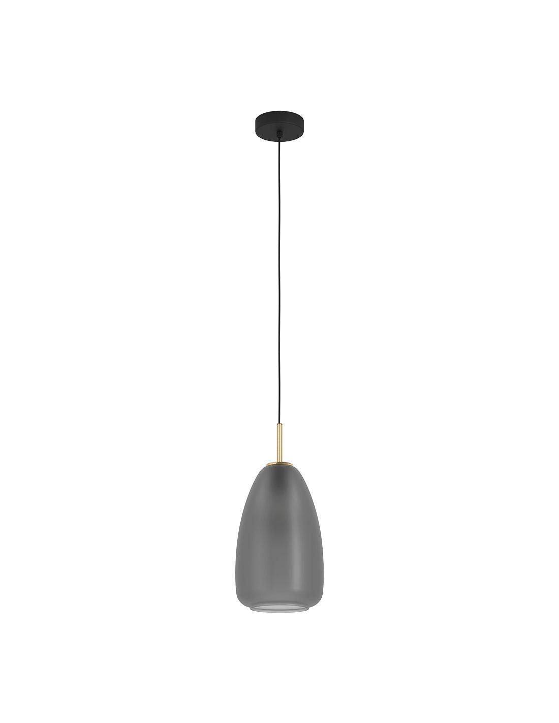 Lámpara colgante con tulipa de cristal ahumado satinado, que realizará un efecto sobre la emisión de su luz muy elegante y adecuado para momentos de relax. Ideal para el salón, como lámpara encima de una mesa de noche o en el recibidor. Utiliza una bombilla de casquillo E27, no incluida.