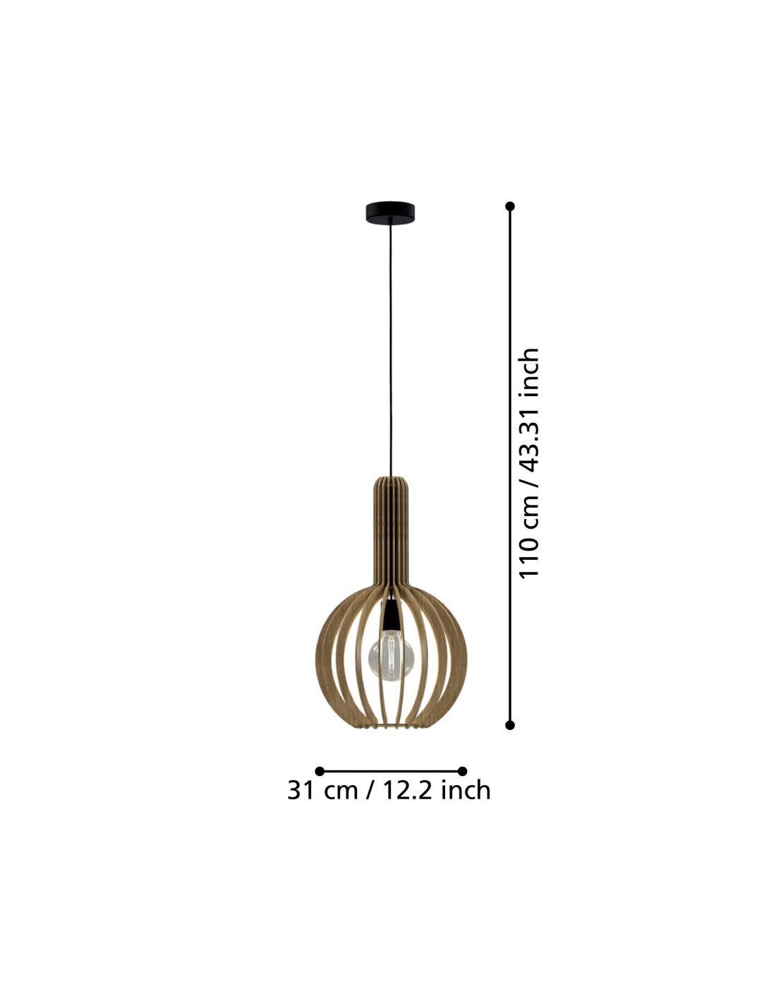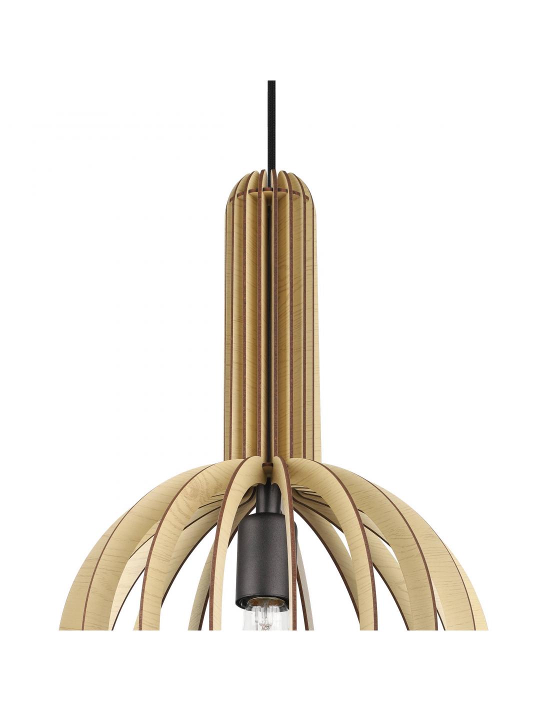 Lámpara colgante fabricada con varas de madera dispuestas en su conjunto en forma de calabaza con un acabado color arce muy bonito. Esta pieza es perfecta para protagonizar estancias como un comedor pequeño, una habitación de tamaño mediano, o como segundo punto de luz en combinación con otra de distinta forma. ¡Tú eliges! Utiliza una bombilla de casquillo e27, no incluida.
