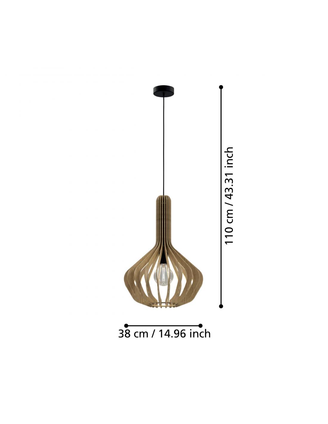 Lámpara colgante con varas de madera en acabado color arce, de estética nórdica y diseño moderno con líneas sencillas. Su cable y base son de color negro, esta última de acero. Necesita una bombilla de casquillo e27, no incluida.