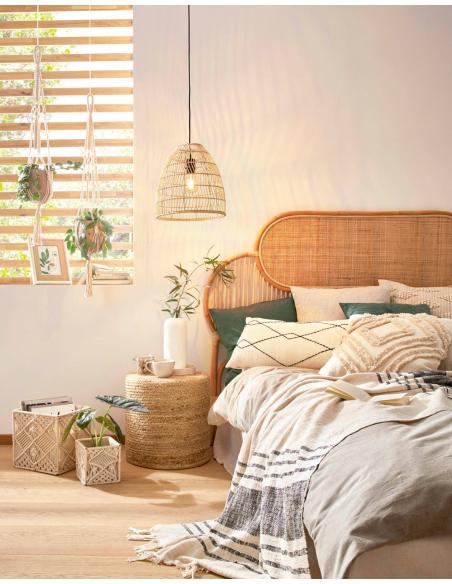 Lámpara colgante de fibras naturales con tulipa fabricada de madera de manera artesanal de fibras entretejidas cuyo resultado es una lámpara muy en tendencia, bonita y con mucho que aportar a cualquier estancia donde la coloques. Necesita una bombilla E27, no incluida.