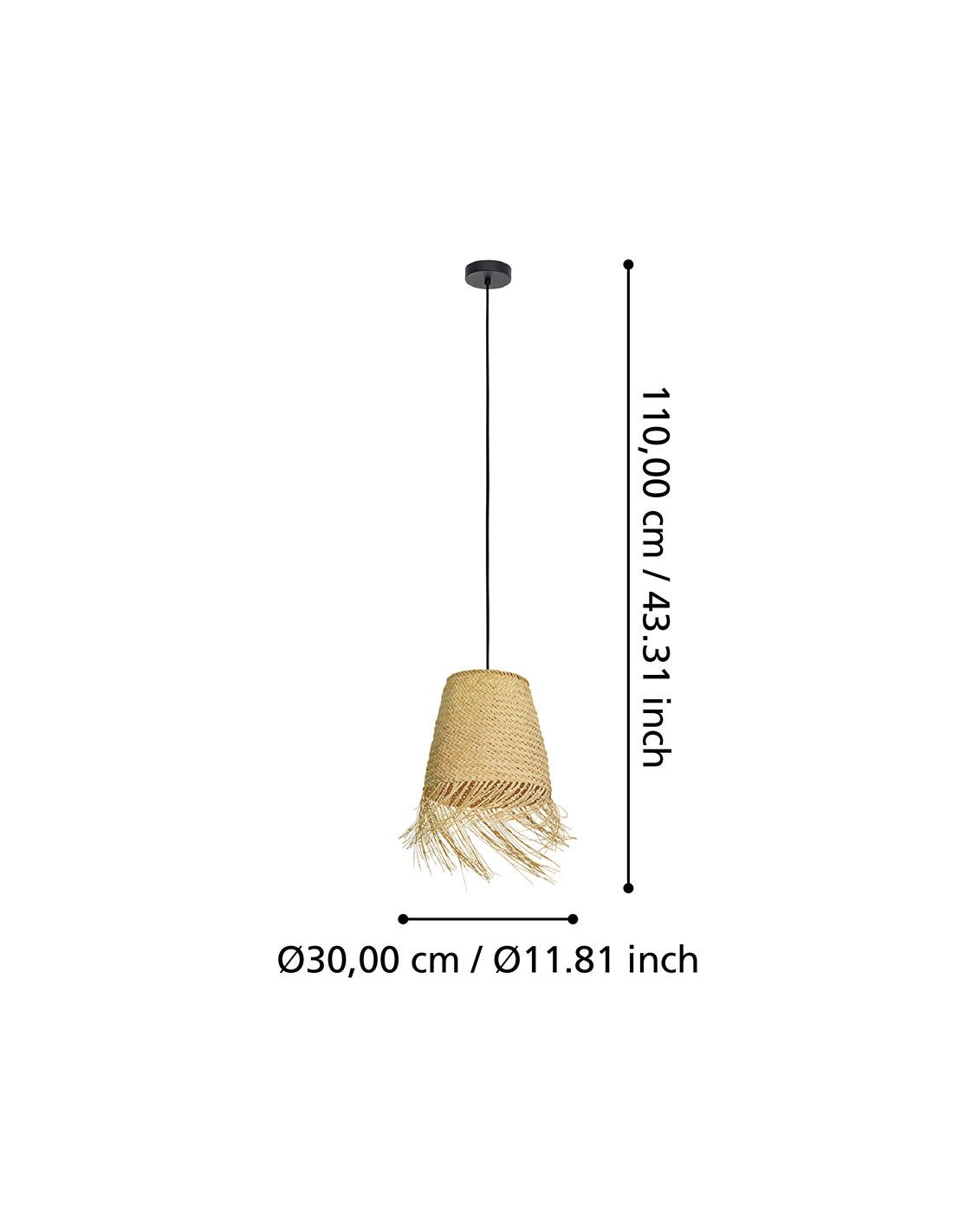 Lámpara colgante de fibras naturales fabricada en madera natural entrelazada y bajo desflecado para un aspecto rústico y natural muy bonito. Es una pieza muy innovadora y sencilla que aportará a tu estancia decoración, iluminación y estilo. Utiliza una bombilla de casquillo E27, no incluida.
