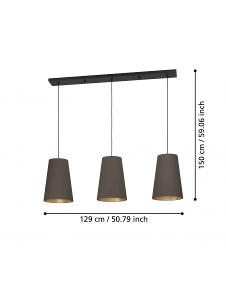 Lámpara colgante 3 luces textil negro - Eglo Petrosa