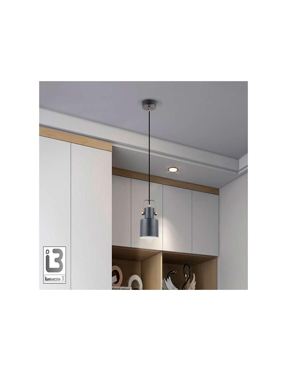 Lámpara de 1 luz realizada en metal acabado negro mate, detalles en cobre satinado. Pantalla con inclinación regulable y altura regulable. 1 E27