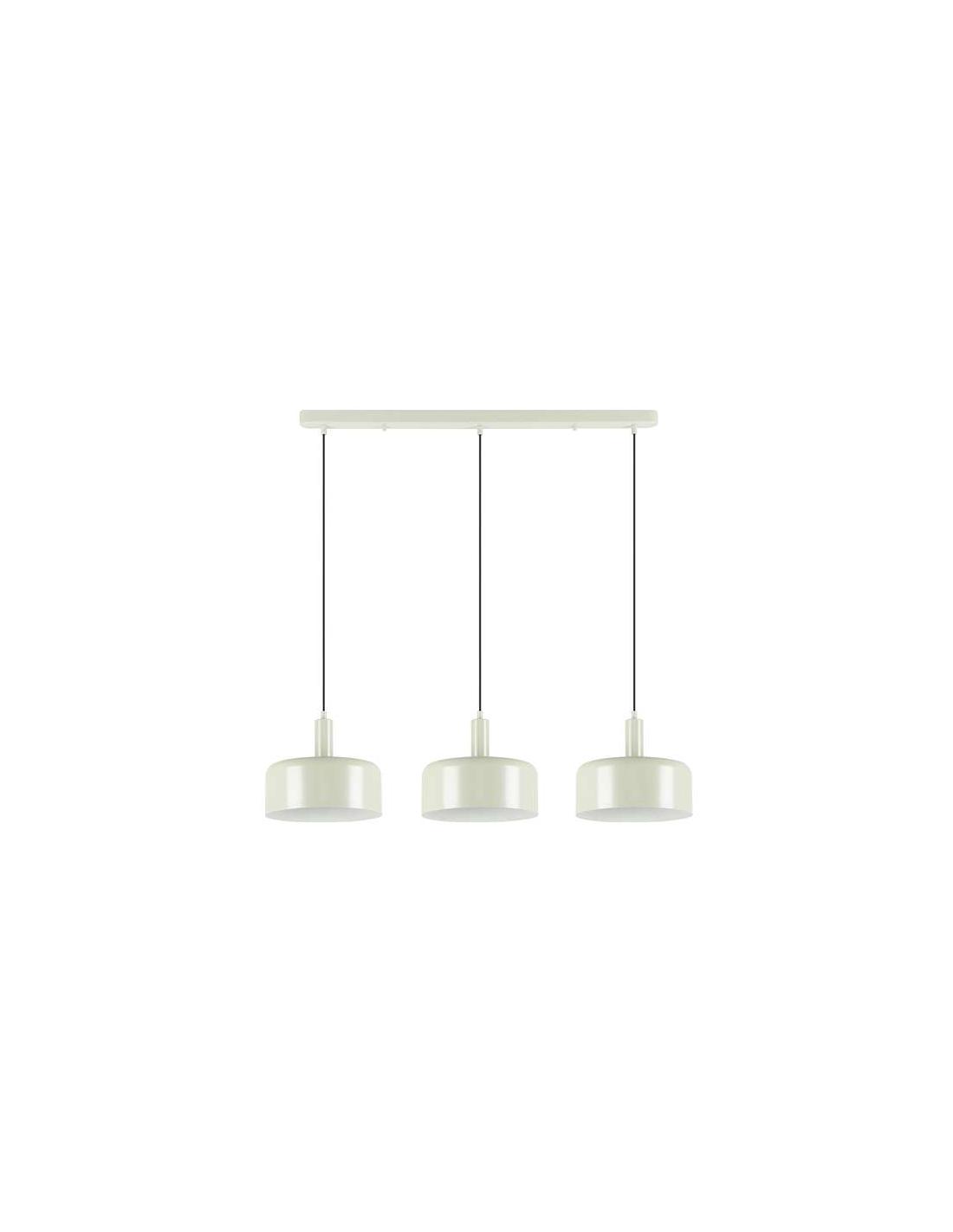 Lámpara de 3 luces en línea, realizada en metal acabado gris perla satinado y blanco mate. Regulable en altura. 3 E27
