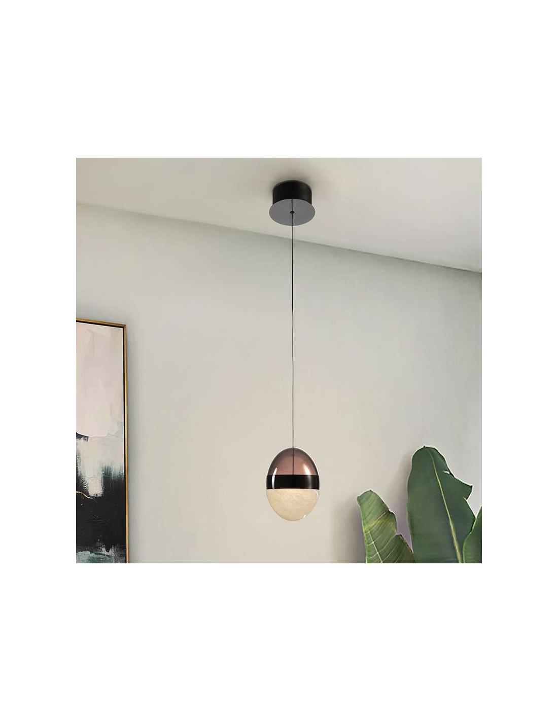 Lámpara LED, realizada en metal acabado negro. Tulipa de Ø15 cm, de policarbonato smoke y cristal marmoleado. con aro de metal acabado en cromo negro. 9W LED. 3.000K. 418 lm.