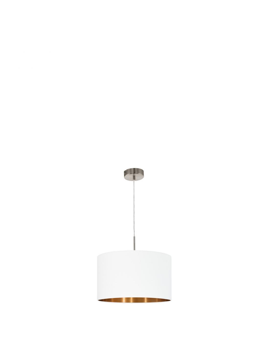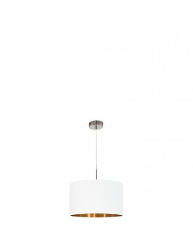 Lámpara colgante de Cobre PASTERI. Fabulosa para Lámpara de salón, fabricada por EGLO, en Acero color Gris y Textil color blanco, cobre. Necesita bombillas E27, NO INCLUIDA.