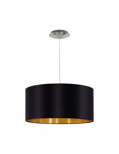 Lámpara colgante de Tela MASERLO. Sensacional para Lámpara de salón, fabricada por EGLO, en Acero color Gris y Textil color negro, oro. Necesita bombillas E27, NO INCLUIDA.