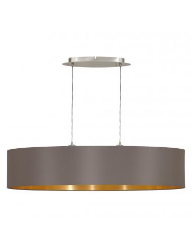Lámpara colgante de Tela MASERLO. Extraordinaria decisión para Lámpara de salón, fabricada por EGLO, en Acero color Gris y Textil color cappuccino, oro. Necesita bombillas E27, NO INCLUIDA.