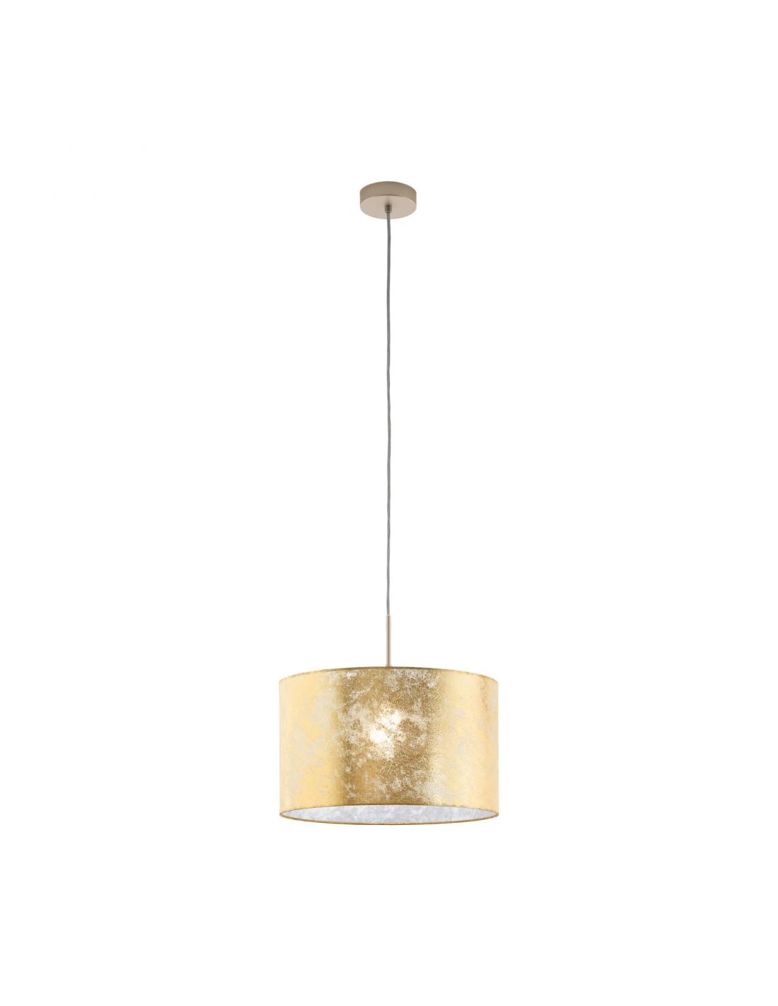 Lámpara colgante de Tela VISERBELLA. Sensacional para Lámpara de salón, fabricada por EGLO, en Acero color Champán y Textil color oro. Necesita bombillas E27, NO INCLUIDA.
