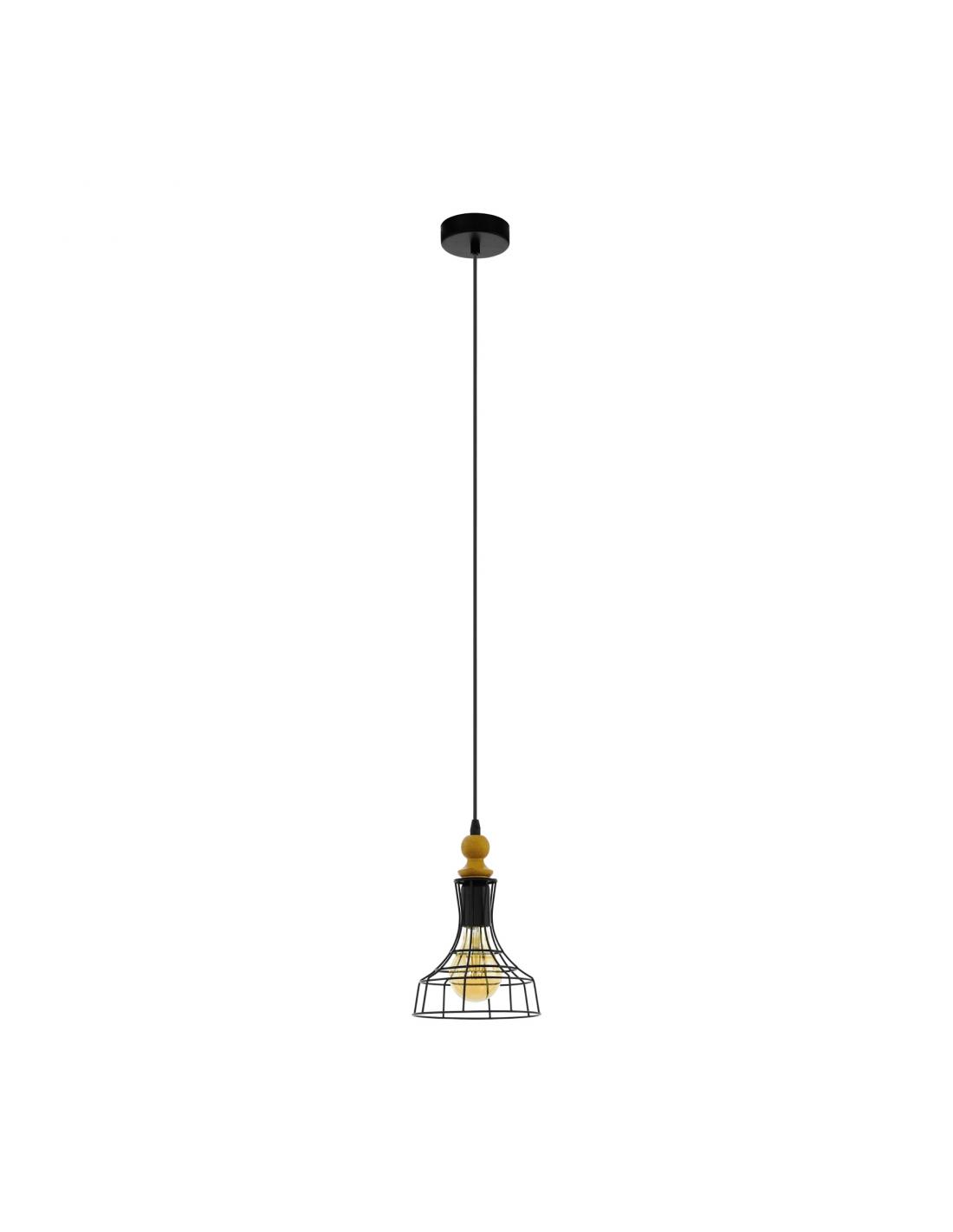 EGLO 33043 - BAMPTON 1 Lámpara colgante de Madera en Acero, madera marrón
