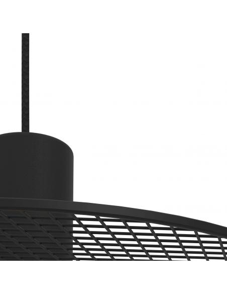 La lámpara colgante IKESTON está fabricada con cuatro cabezales, cada uno de las cuales tiene un portalámparas de metal negro y un elemento redondo de metal . Los cabezales están suspendidos a diferentes alturas de un dosel metálico del mismo color con cables textiles negros. La lámpara colgante se combina con bombillas visibles. La lámpara colgante con su estilo industrial encaja en cualquier estilo y proporciona una iluminación especial en cualquier estancia, ya sea el salón o el comedor. Las bombillas de filamentos que se muestran no están incluidas. La lámpara es apta para cualquier bombilla con casquillo E27.