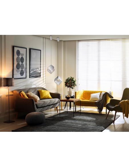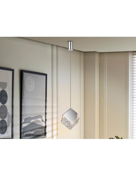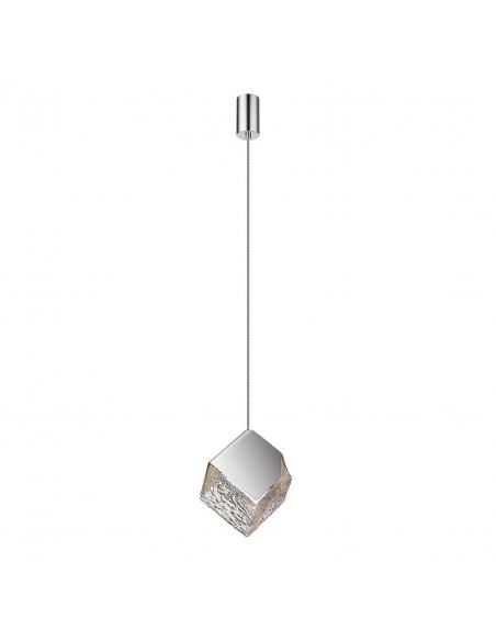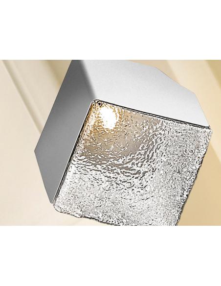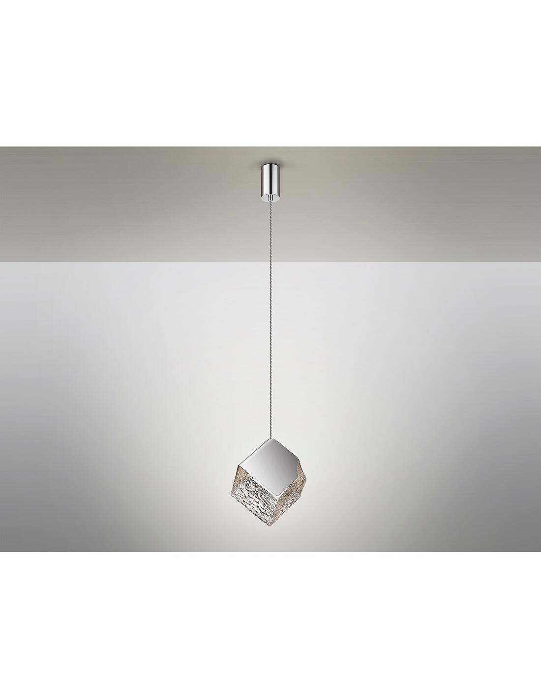 Lámpara de 1 luz realizada en metal y acero acabado cromo. Tulipa cúbica de cristal texturizado. Regulable en altura. ·Incluye 1 G9 LED 6W