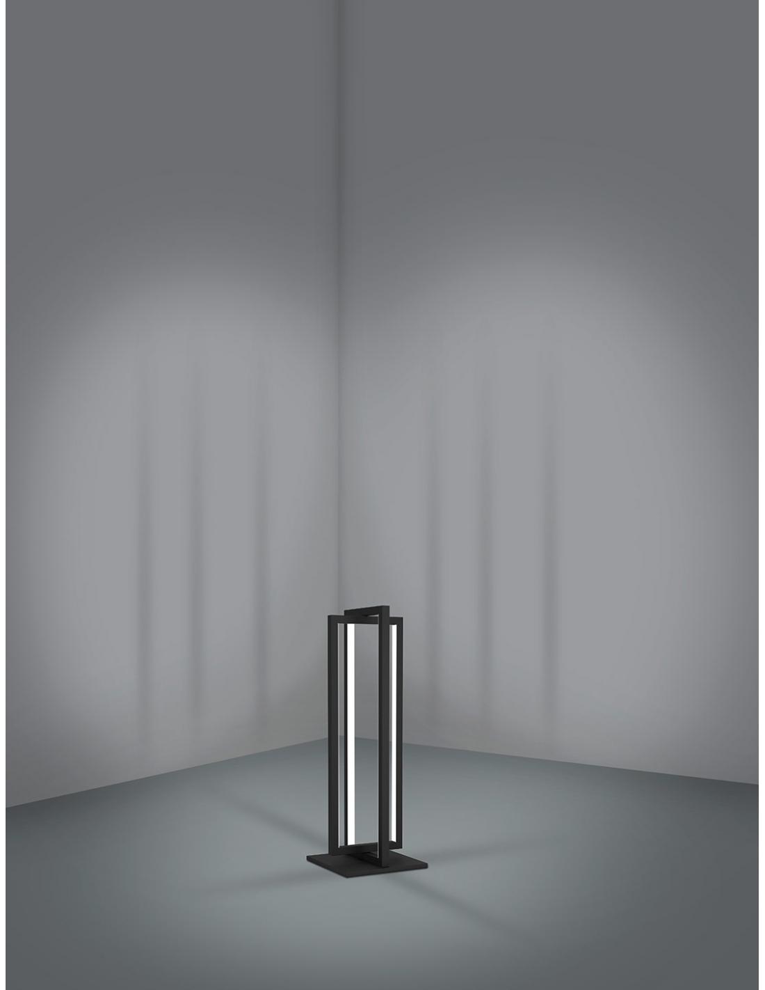 Lámpara de pie con led integrado de estilo minimalista de acero color negro. Su led incorporado emite una luz 2200 lúmenes y además es regulable en cuanto a la temperatura de su luz, que podrás controlar con mando a distancia desde una luz neutra cálida de 3000K hasta una luz fría de 6500K, perfecta para crear ambientes distintos en tu salón. Mando incluido.