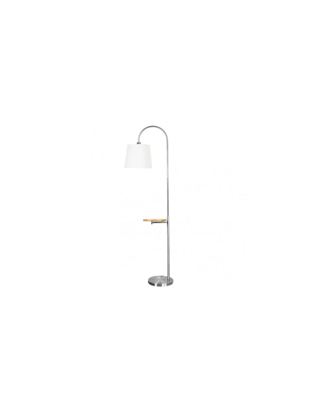 Pie Salon Marfil 1xe27 Niquel C/pantalla Blanca C/mesita Madera Incorporada 180x30x52 Cm