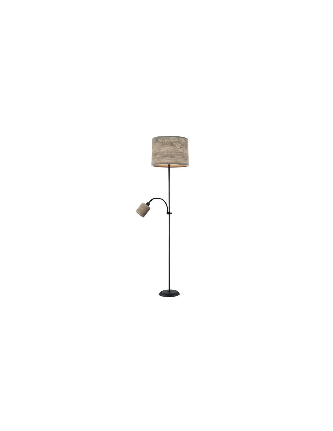 Pie De Salon Armonia 1xe27+1xe14 Negro-madera Gris C/lector 155x40x40 cm