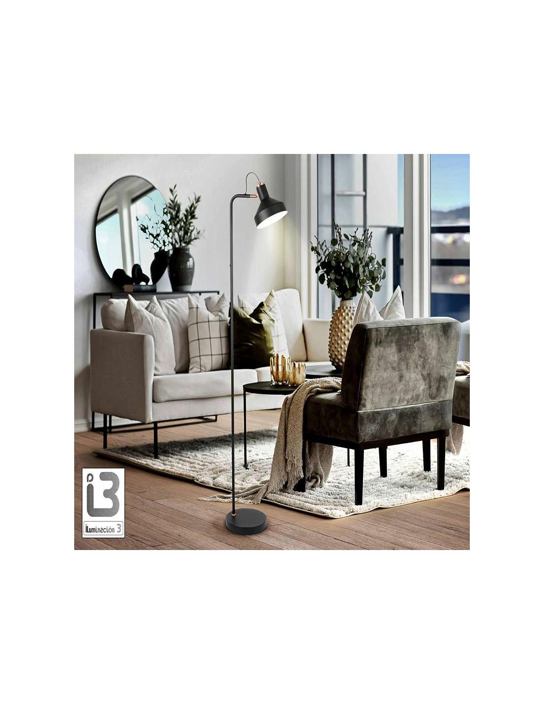 Lámpara de pie realizada en metal acabado negro mate y detalles en cobre satinado. Pantalla con inclinación regulable. 1 E27