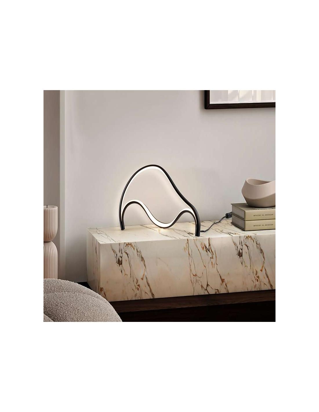 Lámpara de sobremesa realizada en metal y aluminio acabado negro mate arenado. Difusor opal de silicona. 18W LED. 823 lm. 3.000 K.
