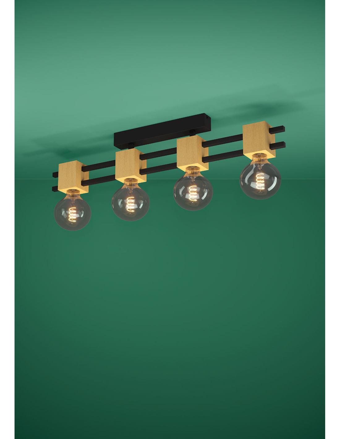 Lámpara de techo 4 luces madera negro - Eglo Levantara