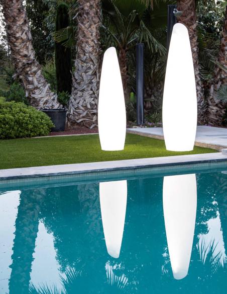 FREDO 140 BATTERY TUBE es una lámpara de pie exterior. Su ligera estructura fabricada en polietileno con IP65 la hace apta para iluminar tanto espacio al aire libre como interiores. Utiliza LED Tube con RGB y luz fría (6000 - 6500k). Su ángulo de iluminación es de 360º. Dispone de una batería de litio con autonomía de hasta 12 horas.