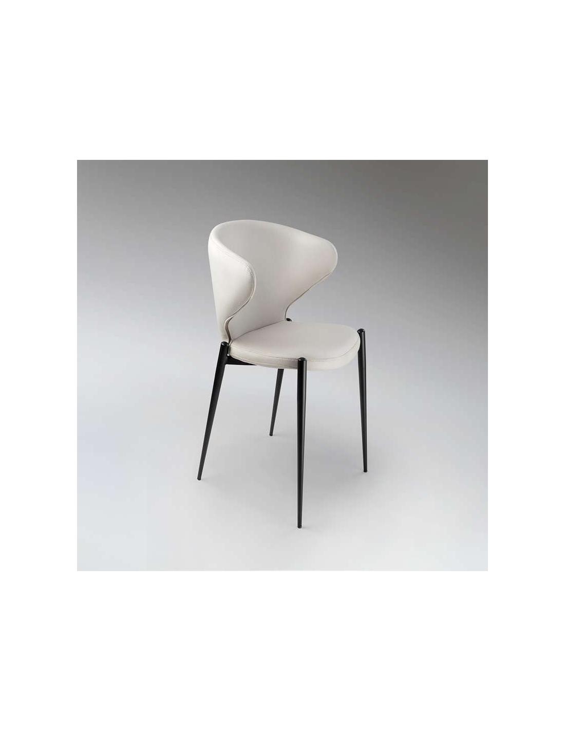 Silla realizada en metal, acabado negro mate. Asiento y respaldo de madera contrachapada y espuma. Tapizado textil de poliéster 100% en color blanco hueso. Limpieza en seco.