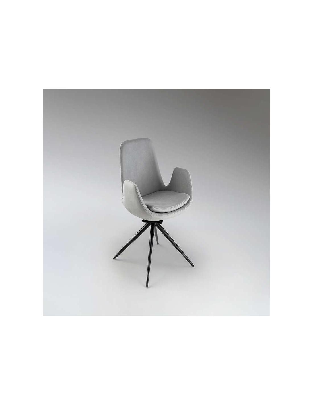 Silla giratoria, realizada en metal, acabado negro mate. Asiento y respaldo de madera contrachapada y espuma. Mecanismo giratorio con retorno automático.Tapizado textil de poliéster 100% en color gris claro. Limpieza en seco.