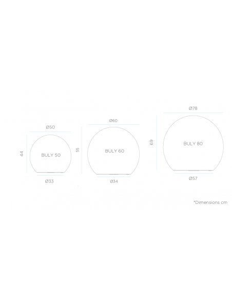 Descubre la lámpara esférica de exterior BULY, la lámpara redonda perfecta para iluminar y decorar cualquier entorno. Diseñada y fabricada en España, esta lámpara lleva consigo el encanto del mediterráneo. La bola iluminada Buly está disponible en varios tamaños 20, 30, 40, 50, 60 y 80. Permitiéndote adornar tanto una mesa de comedor como la piscina de tu hogar. Al igual que con cable en luz blanca, e inalámbrica, para que puedas cambiar de tono de luz sin tener que salir del agua. La lámpara iluminada BULY es perfecta para que le des un toque diferente a tus fiestas nocturnas o aporte un tono diferente puesta en tu mesita de noche. Tiene múltiples opciones de conexión y funcionalidades, es una lámpara muy versátil - Conexión por cable luz fría elige la conexión por cable con luz fría para un estilo moderno tanto en interiores como en exteriores. Disponible en tamaños 20, 30, 40, 50, 60 y 80. - Conexión por cable luz cálida elige la conexión por cable con luz cálida para una iluminación acogedora y elegante en interiores y exteriores. Disponible en tamaños 20, 30, 40, 50 y 60. - Carga solar y batería recargable controla la luz cálida, luz fría y colores RGB mediante el mando a distancia. También cuenta con encendido crepuscular. Disponible en tamaño 20, 30, 40, 50, 60 y 80. - Carga solar flotante luz LED RGB y blanco. Cuenta con encendido crepuscular y mando a distancia para que puedas controlar la iluminación. Tiene IP68, por lo que es el elemento perfecto para tu piscina. Disponible en tamaños 20, 30, 40. Descubre cómo la lámpara BULY puede transformar tus espacios.